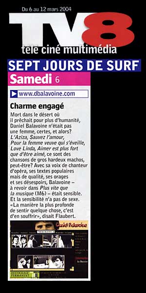 Presse -TV8 - Programme Télé Suisse - 6 mars 2004