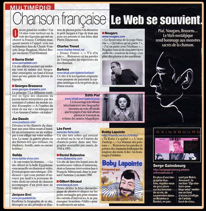 Avant 1998 ce site n'existait que sous la forme de quelques pages simples : une biographie simple, le premier document fut la retranscription à l'écrit du face à face avec François Mitterrand (retranscription faite mot pour mot en écoutant les propos échangés entre les deux protagonistes), puis la discographie est venue étaillée ce premier contenu. Le site a pris son ampleur véritablement courant 98.