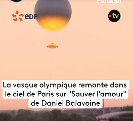La vasque olympique remonte dans le ciel de Paris au jardin des Tuileries sur “Sauver l’amour” de Daniel Balavoine via une réorchestration de Victor Le Masne...